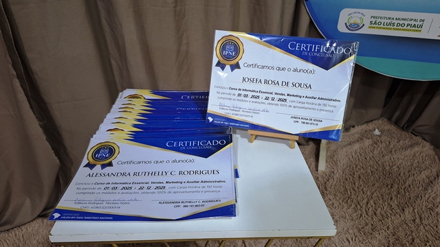 Entrega de certificados de cursos profissionalizantes em São Luís do Piauí