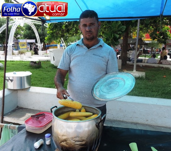 As histórias se misturam à diversidade de produtos e somos tomados pelo aroma do milho assado, que tanto aguça o paladar do nordestino. Maike Weberson Cunha, 32 anos, viu nesta paixão pelo milho uma forma de ganhar dinheiro. Há 10 anos ele possui uma barraca de milho na Praça, atividade que começou ao lado do pai e que nos dias atuais mantém sozinho.