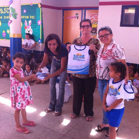 Ao todo 13.910 fardamentos estão sendo entregues, 5.320 shorts e 8.590 camisetas. Os alunos que estudam até a 4° série receberão fardamento completo, com short e camiseta, a partir da 5° série os alunos vão receber somente a camiseta.
