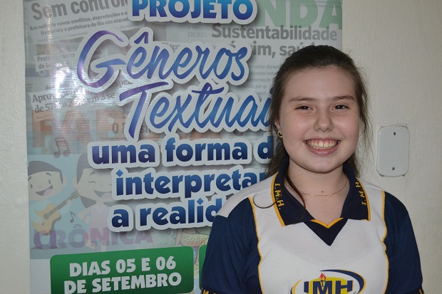 A aluna do 7° Ano C, Maria Lúcia Valença, frisou que o projeto de linguagens sobre os gêneros textuais proporciona momentos de interação entre a turma, além de desenvolver potencialidades na escrita, leitura, oralidade e nas artes.