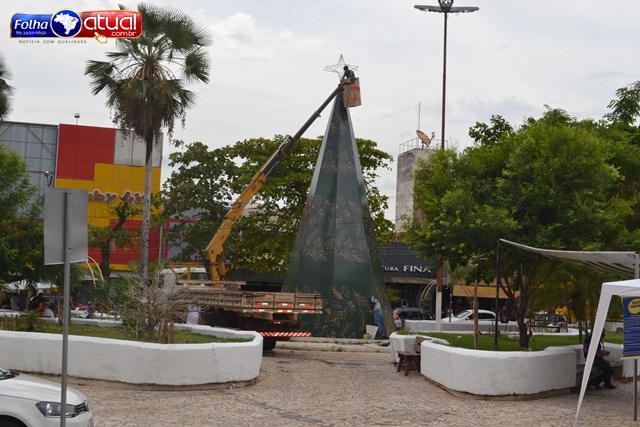 A prefeitura de Picos montou uma árvore de Natal de 10 metros de altura na Praça Félix Pacheco. No final da manhã desta sexta-feira, 08, uma equipe técnica estava concluindo o serviço de instalação das luzes de Natal cuja inauguração oficial acontecerá na noite do sábado, 09, em evento previsto para ter início às 19h00, juntamente com a toda a decoração.