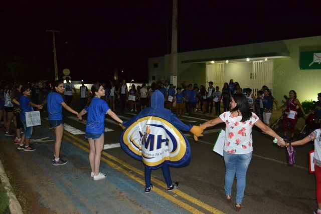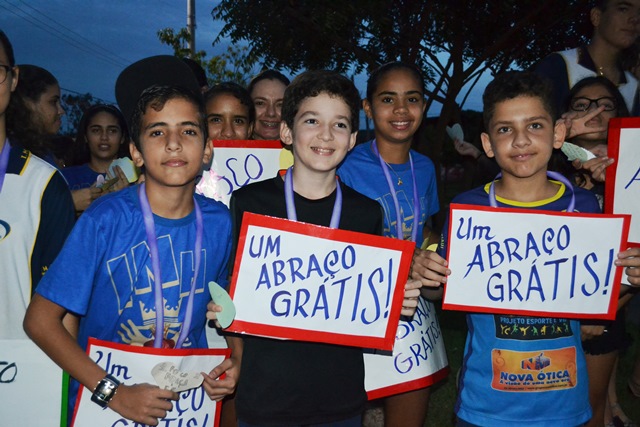 Alunos e professores da instituição caminharam pela Avenida distribuindo abraços, corações e frases de otimismo para as pessoas que praticam atividade física e ecoando a importância da prática da gentileza. Logo, em seguida, os mobilizadores se concentram em frente à Academia de Saúde, onde apresentaram coreografias e momentos de oração.