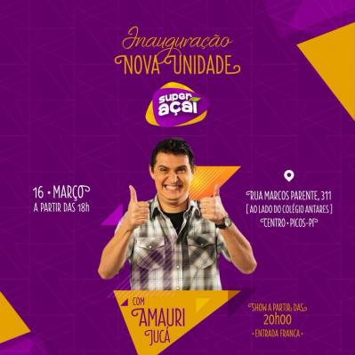 A franquia Super Açaí abrirá nesta sexta-feira (16), às 18h00, mais uma loja na cidade de Picos. A grande novidade para os clientes será o show do humorista Amauri Jucá que está previsto para acontecer às 20h00.
