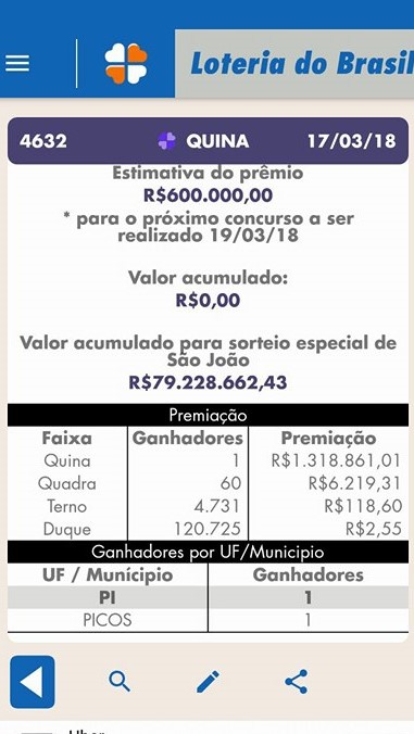 Uma aposta feita na cidade de Picos levou o prêmio de R$ 1.318.861,01 no concurso 4632 da Quina. O resultado foi divulgado na noite deste sábado (17), por volta de 20h, e os números sorteados foram 01, 20, 43, 44 e 47.