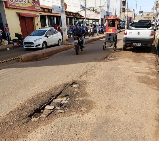 Os buracos espalhados na Avenida já evidenciam a deterioração da pavimentação asfáltica e o aparecimento do calçamento.