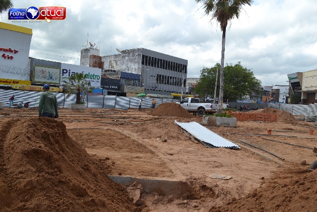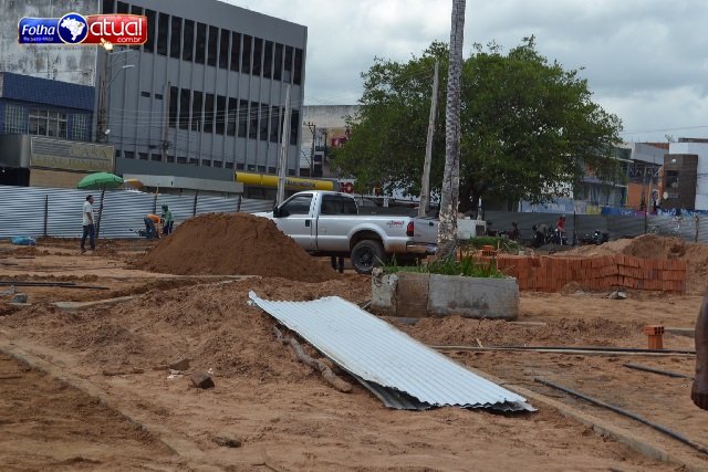 Sara informou que os canteiros da praça já foram concluídos, devendo passar a partir de agora para o piso. “Os canteiros já estão aterrados, já vamos começar a colocar o piso pra poder ir pra parte externa da praça”, explicou.