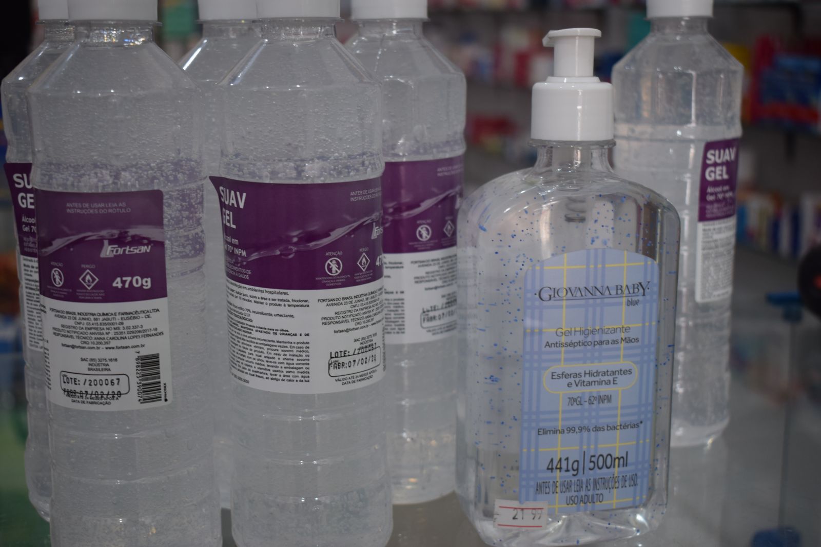 Álcool gel custam entre R$ 10,00 e R$ 20,00.