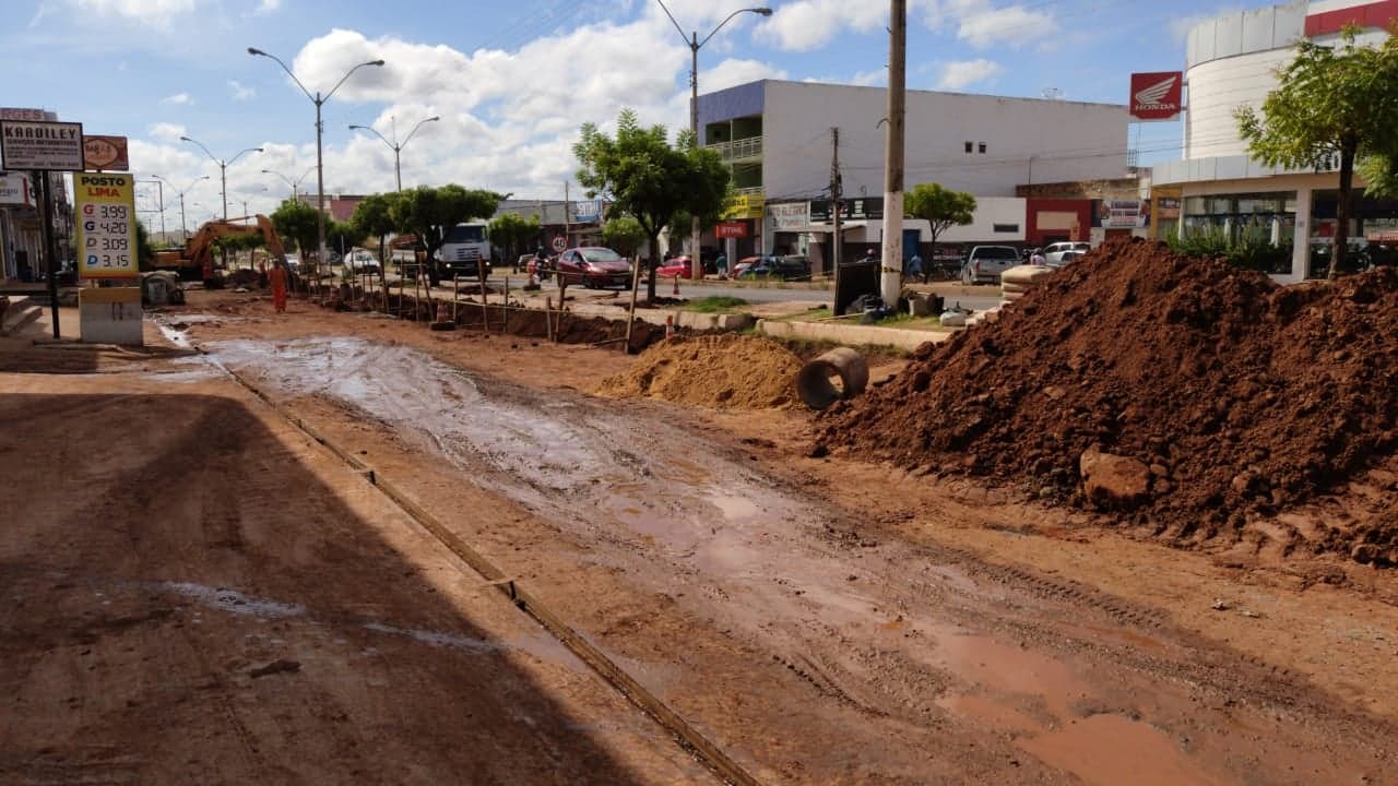 Serão drenados 455 metros que compreende a rotatória do 1° Balão à parada Antônio Mendes. Na via lateral, estão sendo realizados trabalhos de escavação, assentamento de tudo, execução de PV e bocas de lobo.