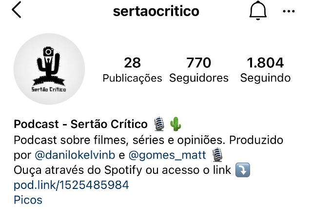 Há cerca de quatro meses surgiu a ideia de dois amigos de desenvolverem um projeto voltado para o entretenimento com comunicação. Matheus Gomes que é estudante de engenharia agronômica e o jornalista Danilo Kelvin são os criadores do Podcast Sertão Crítico. Esta plataforma em formato de áudio aborda episódios que tratam sobre temáticas culturais como séries, filmes e música e além disso, temáticas do cotidiano como a vida das personalidades.