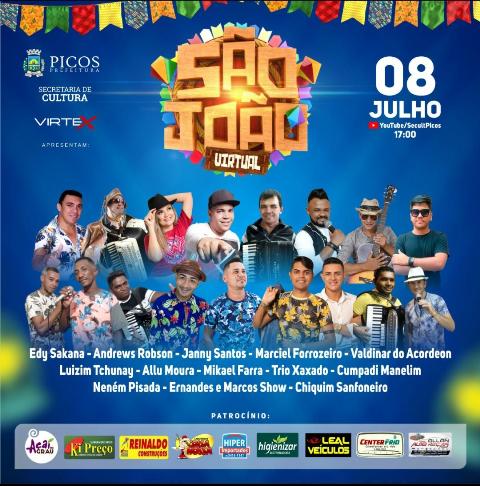 A Prefeitura de Picos, por meio da Secretaria Municipal de Cultura, vai realizar o São João Virtual. O evento, segundo o secretário Marcelo Nordeste, pretende fomentar a cultura local.