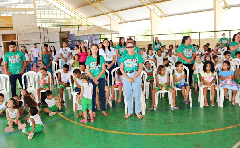 A cerimônia de abertura foi realizada na quadra poliesportiva e reuniu autoridades locais, profissionais das áreas de saúde, educação e assistência social, além de famílias e membros da comunidade.