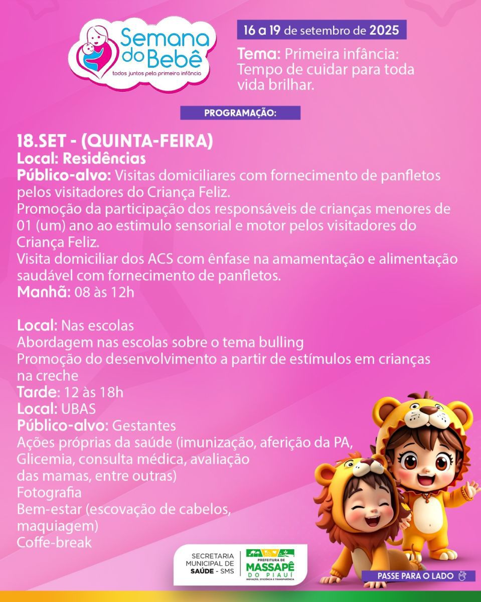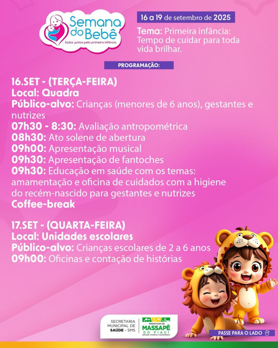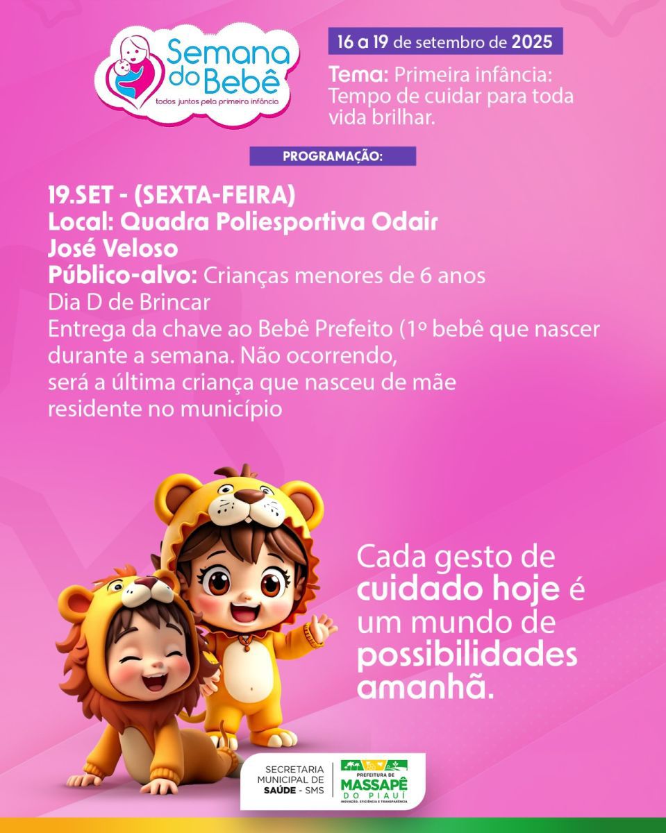 A Prefeitura Municipal de Massapê do Piauí deu início, na manhã desta terça-feira, 16 de setembro, à edição 2025 da Semana do Bebê, iniciativa que reafirma o compromisso do município com o cuidado, a proteção e a promoção dos direitos da primeira infância.