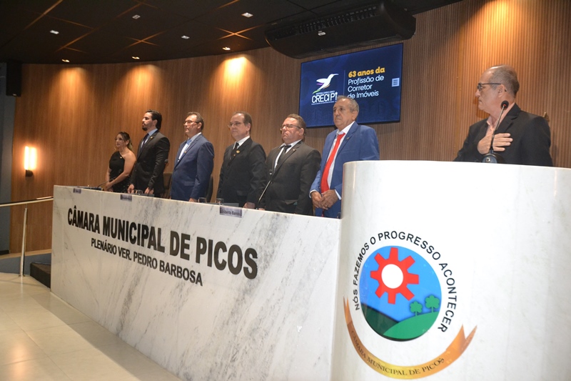 A Câmara Municipal de Picos realizou na noite desta quarta-feira, 24 de setembro, uma Sessão Solene em homenagem ao Dia do Corretor de Imóveis, data comemorada nacionalmente em 27 de agosto. A solenidade foi proposta pelo vereador Francisco das Chagas Sousa, o Chaguinha, e contou com a presença de vereadores, autoridades, representantes do Conselho Regional de Corretores de Imóveis (CRECI) e profissionais da área imobiliária.