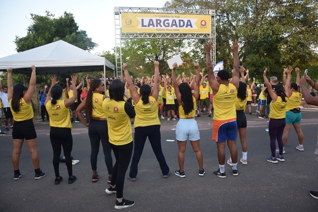 O início da corrida foi precedido por um momento de alongamento conduzido pela profissional de Educação Física, Nonata Santos, promovendo o preparo adequado dos participantes.