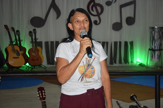 A solenidade teve início com a composição da mesa de honra e a entoação do Hino Municipal. Em seguida, foram apresentados os professores responsáveis pelas aulas, que aproveitaram o momento para expressar a emoção e o entusiasmo em contribuir com a formação artística dos alunos.