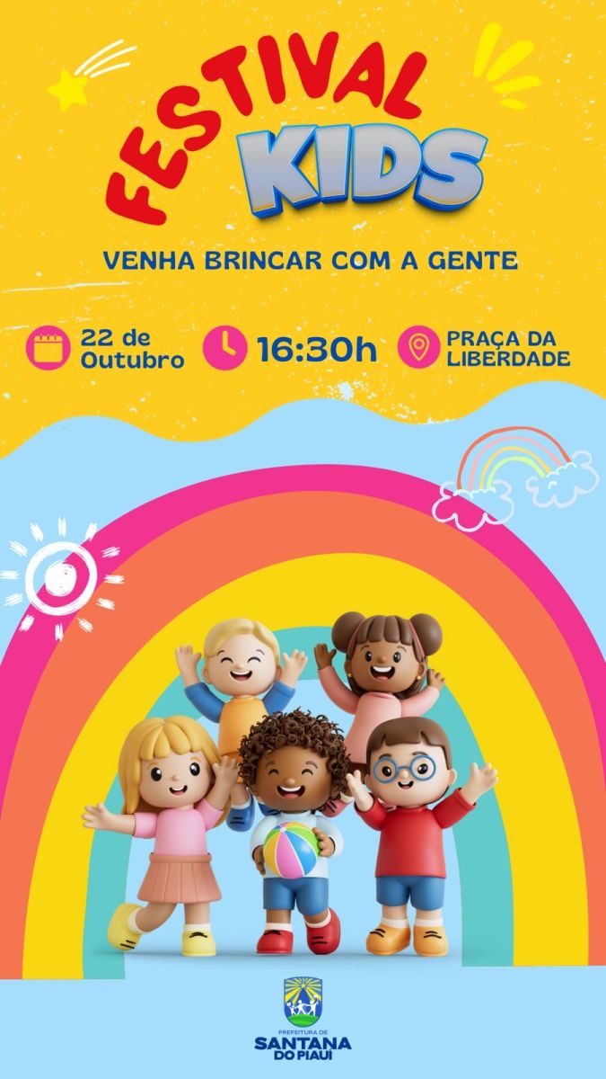 Com o objetivo de levar alegria e proporcionar um momento de lazer para as crianças santanenses, a Prefeitura de Santana do Piauí promoverá nesta quarta-feira (22) o Festival Kids. O evento, uma iniciativa da gestão municipal liderada pelo prefeito Adonaldo Cassiano, será realizado a partir das 16h30, na Praça da Liberdade, com organização da Secretaria Municipal de Cultura.