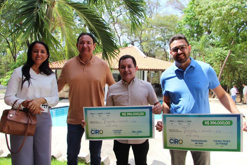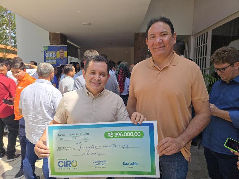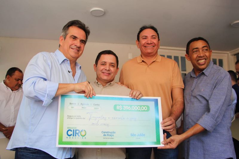 São Julião celebrou nesta sexta-feira, 31 de outubro, mais um importante avanço em sua infraestrutura urbana. O prefeito Renaldo Ramos, acompanhado do líder político Francimar Pereira, recebeu das mãos do senador Ciro Nogueira um cheque simbólico no valor de R$ 396 mil destinado à construção de uma praça pública no município.