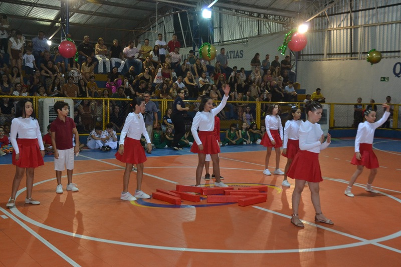 Após o momento de fala, a quadra se transformou em palco para apresentações das turmas do Infantil, que encantaram o público com coreografias, dramatizações e performances cuidadosamente preparadas pelos professores.