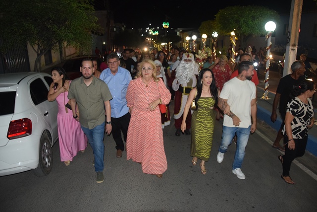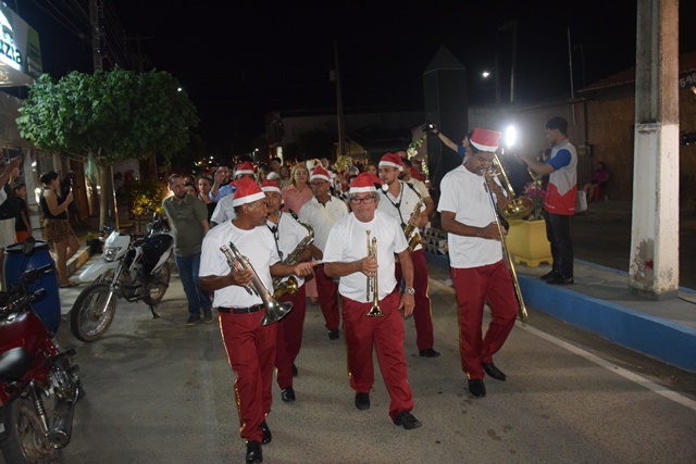 A abertura da programação ocorreu na entrada da cidade, onde moradores e visitantes se reuniram e em seguida saíram em caminhada festiva até a Praça Central. O percurso foi animado pela Banda de Música Manancial e pela presença especial do Papai Noel e da Mamãe Noel, que encantaram crianças e adultos ao longo do trajeto.
