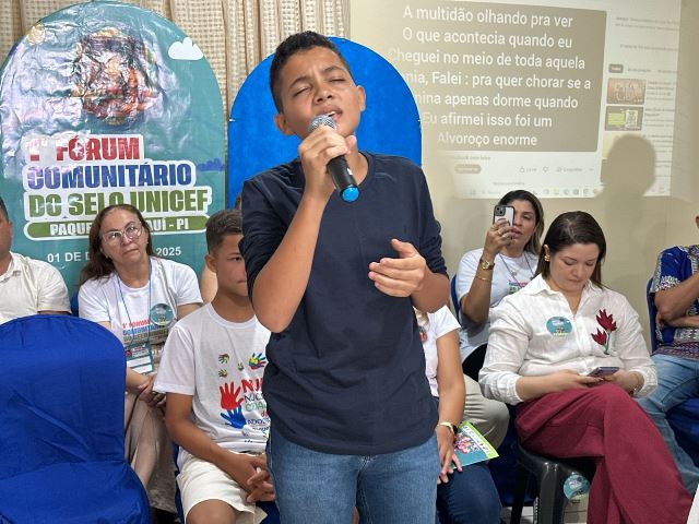 O Conselho Municipal dos Direitos das Crianças e dos Adolescentes (CMDCA), com total apoio da gestão municipal em Paquetá do Piauí, realizou na manhã desta segunda-feira, 1º de dezembro, o 1º Fórum Comunitário do Selo UNICEF, reunindo representantes de diversos setores para debater políticas públicas voltadas à proteção e ao desenvolvimento de crianças e adolescentes.