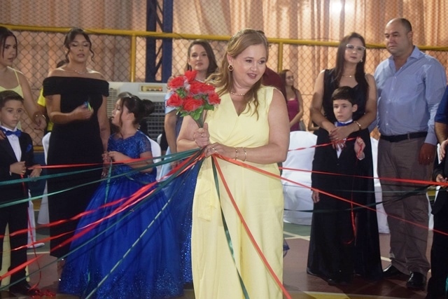 A cerimônia teve início com a entrada dos alunos, acompanhados de seus familiares e das professoras homenageadas. Em seguida, houve um momento orante com as crianças e uma apresentação musical.