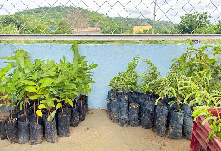 Entre as mudas recebidas estão espécies frutíferas como ata, goiaba, acerola, manga, tamarindo, caju e maracujá, além do ipê, espécie amplamente utilizada em projetos de arborização urbana.