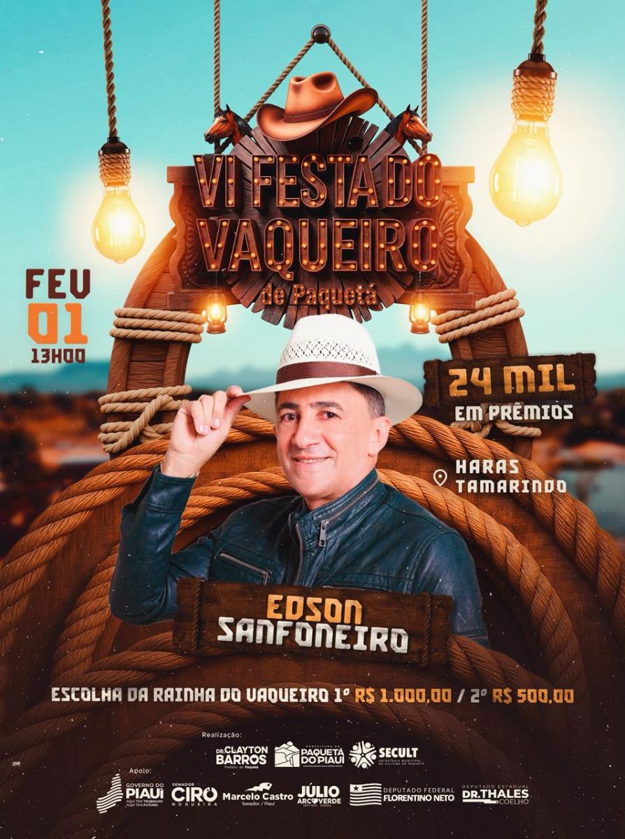 Fazendo parte da programação comemorativa dos 32 anos de emancipação política e administrativa do munícipio, a Prefeitura de Paquetá, por meio do prefeito Clayton Barros, vai promover a VI Festa do Vaqueiro, um dos eventos mais tradicionais do município, que promete movimentar a cidade e valorizar a cultura nordestina.