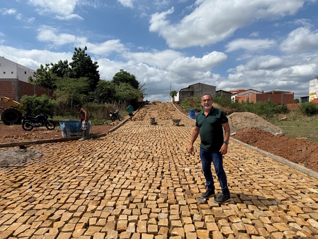 Paralelamente, a Prefeitura também avança com a execução de calçamentos em diversos bairros, levando melhorias para diferentes regiões da cidade. As obras beneficiam diretamente as comunidades, facilitam o deslocamento diário e reforçam o cuidado da gestão com o bem-estar da população.