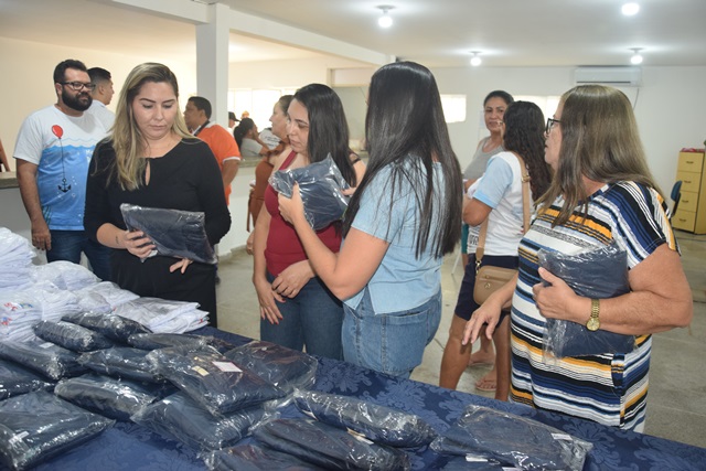 A entrega dos fardamentos aconteceu na sede da Secretaria Municipal de Saúde, que passou a funcionar, a partir deste ano, em um novo espaço, mais amplo, aconchegante e adequado para o atendimento ao público e o trabalho das equipes.