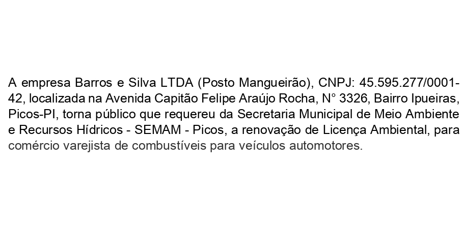 Divulgação de renovação de Licença Ambiental