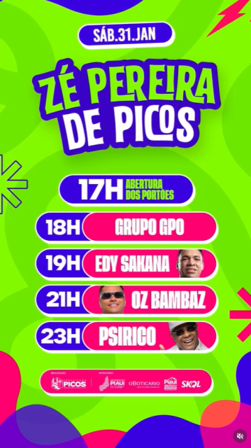 O Zé Pereira de Picos é uma realização da Prefeitura Municipal, com o patrocínio do Governo do Estado do Piauí, O Boticário, Piauí Eletro e Skol.
