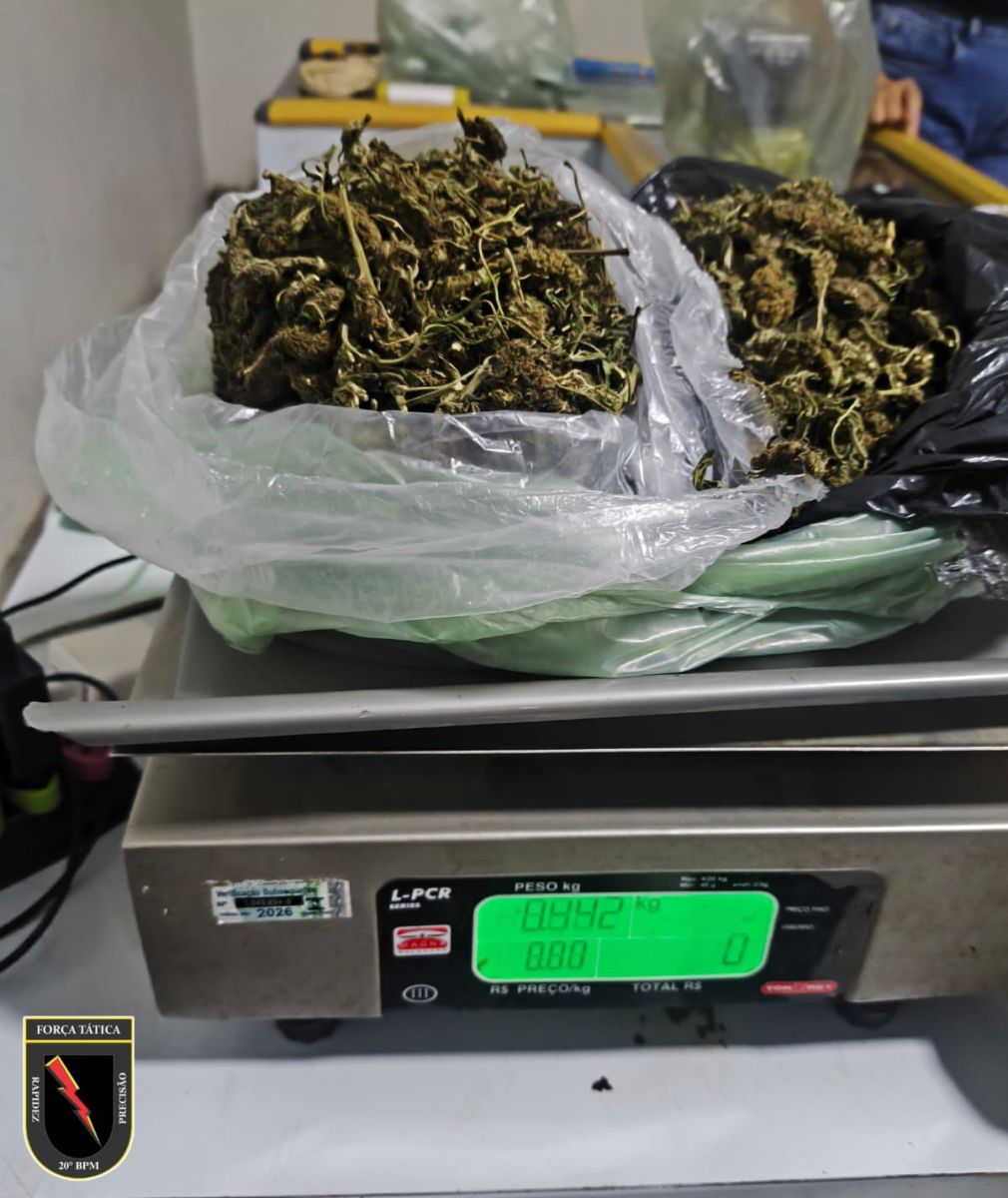 A ação ocorreu na noite da quinta-feira (05), no bairro Triângulo, durante policiamento ostensivo de rotina realizado por equipes da Força Tática. Durante a abordagem, os policiais interceptaram um homem identificado pelas iniciais I.L.A., de 20 anos, com quem foi encontrada uma porção de substância análoga à maconha.
