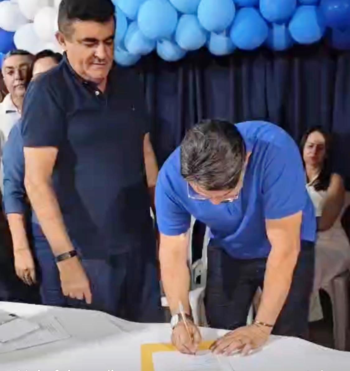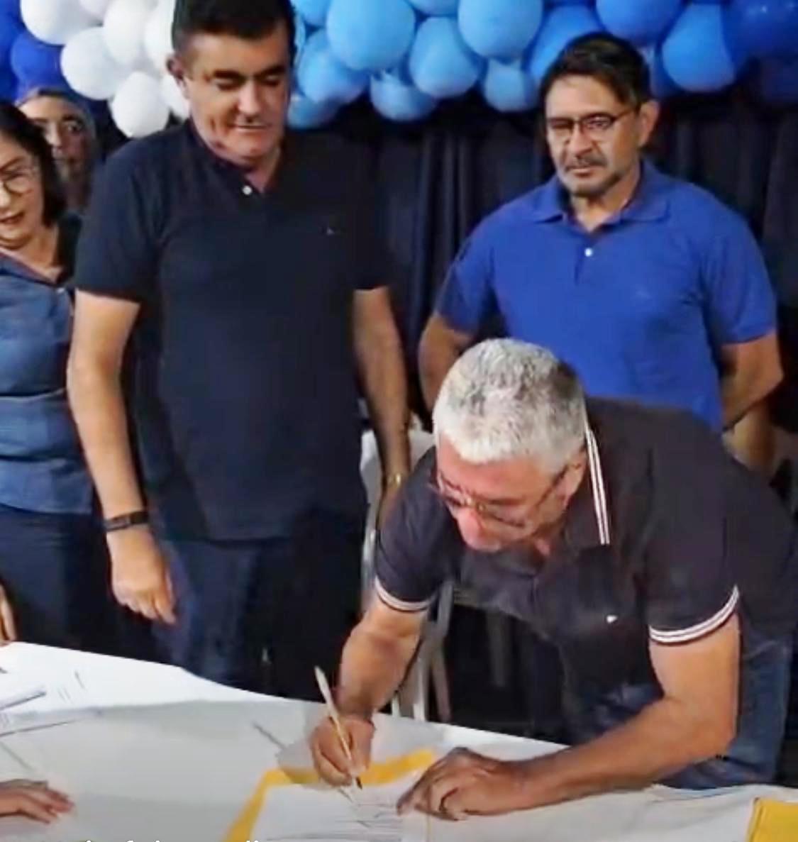 A ordem de serviço foi assinada pelo prefeito Renato Pio; pelo secretário de Agricultura; Lourival Barros; pelo Chefe do Departamento de Estradas e Rodagens, Erismar Manoel; e pelo representante da empresa responsável pela execução da obra, George.