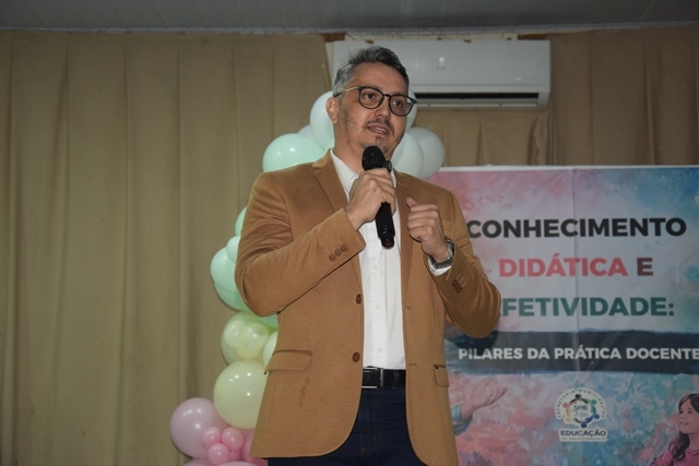 Ainda na primeira noite, a Jornada contou com a palestra magna ministrada pelo pedagogo Cleverson Moreira Lino, que abordou o tema “Acolher, ensinar e transformar na educação pública: Caminhos para a equidade, inovação pedagógica e protagonismo docente”. Durante a explanação, o palestrante ressaltou a necessidade de práticas pedagógicas inclusivas, do fortalecimento do protagonismo dos professores e da construção de uma educação pública mais acolhedora.