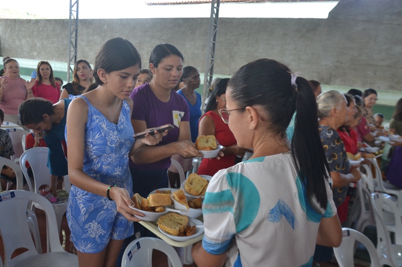 Após o sorteio dos brindes a gestão municipal preparou um coquetel especial para todas as mulheres presentes, com lanches, refrigerante e o especial bolo do Dia da Mulher.