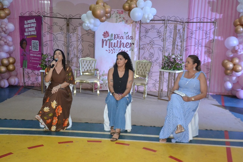 Um dos destaques da programação foi a roda de conversa sobre saúde mental e saúde da mulher, que contou com a participação da advogada Lusianne Araújo, da psicóloga Bianca Barros e da enfermeira Suyane Leal, além da coordenadora da equipe eMulti da Secretaria de Educação, Dra. Luziane. Durante o momento, foram abordados temas como cuidados com a saúde feminina, saúde mental e combate à violência contra a mulher.