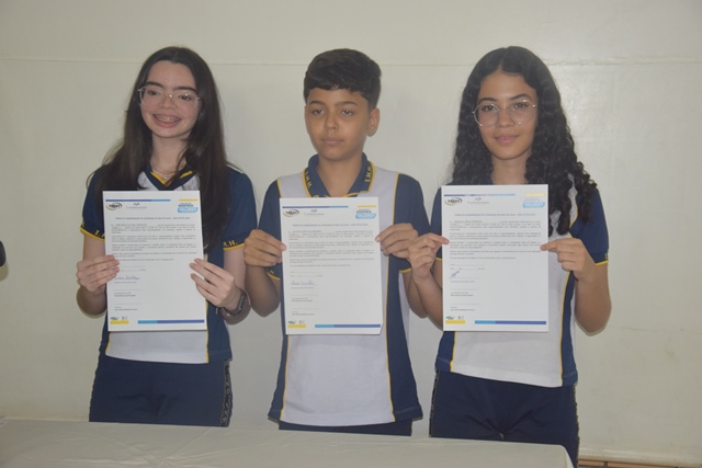 Um dos momentos centrais da cerimônia foi o juramento feito pelos estudantes escolhidos como líderes de turma, seguido da assinatura do termo de compromisso. A partir da posse, os alunos passam a assumir oficialmente a função de representar suas respectivas turmas e colaborar com o desenvolvimento de ações dentro da escola.
