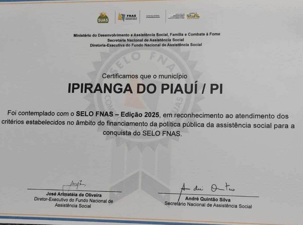 O município de Ipiranga do Piauí foi reconhecido, nesta sexta-feira (10), com o Selo FNAS – Edição 2025, certificação de âmbito nacional que destaca boas práticas na gestão de recursos da Assistência Social. A solenidade de entrega aconteceu em Teresina e reuniu representantes de diversos municípios do estado.