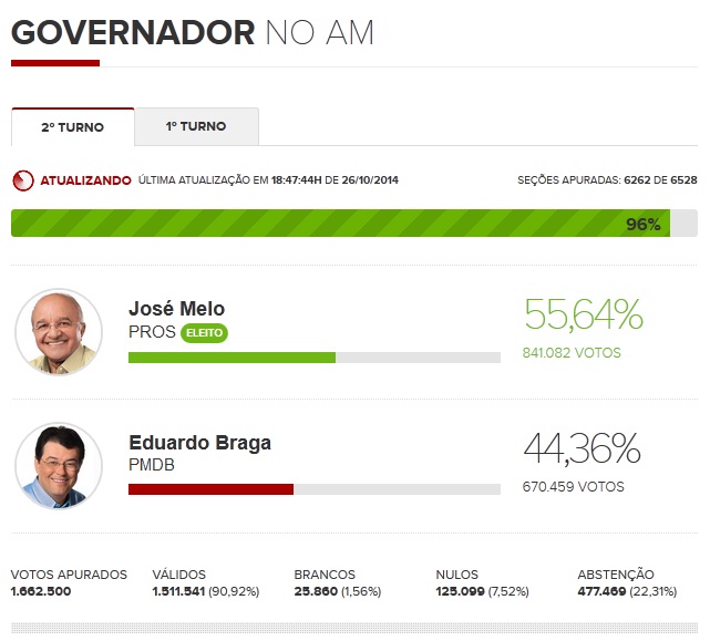 ::: José Melo (PROS) é eleito governador do Amazonas.