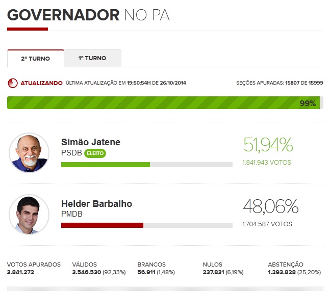 Janete venceu o candidato Helder Barbalho, do PMDB. Resultado foi divulgado com 99% das urnas apuradas.