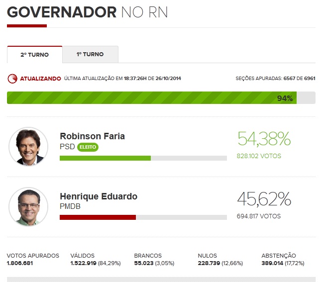 ::: Robinson Faria (PSD) é eleito governador do Rio Grande do Norte.