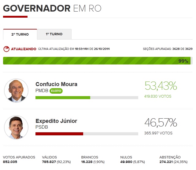 ::: Confucio Moura (PMDB) é eleito governador de Rondônia.