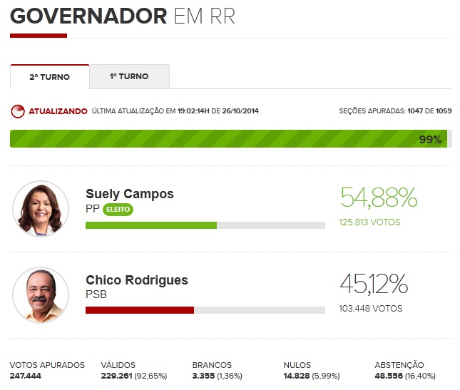 ::: Suely Campos (PP) é eleita governadora de Roraima.