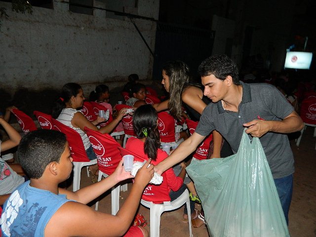 A programação iniciou com a exibição de um filme infantil e em seguida os moradores do bairro grudaram os olhos na telona para assistirem o filme local “Vidas Opostas”, do diretor Thico Almeida. Durante a exibição dos filmes foram servidos pipoca e refrigerante para o público presente.